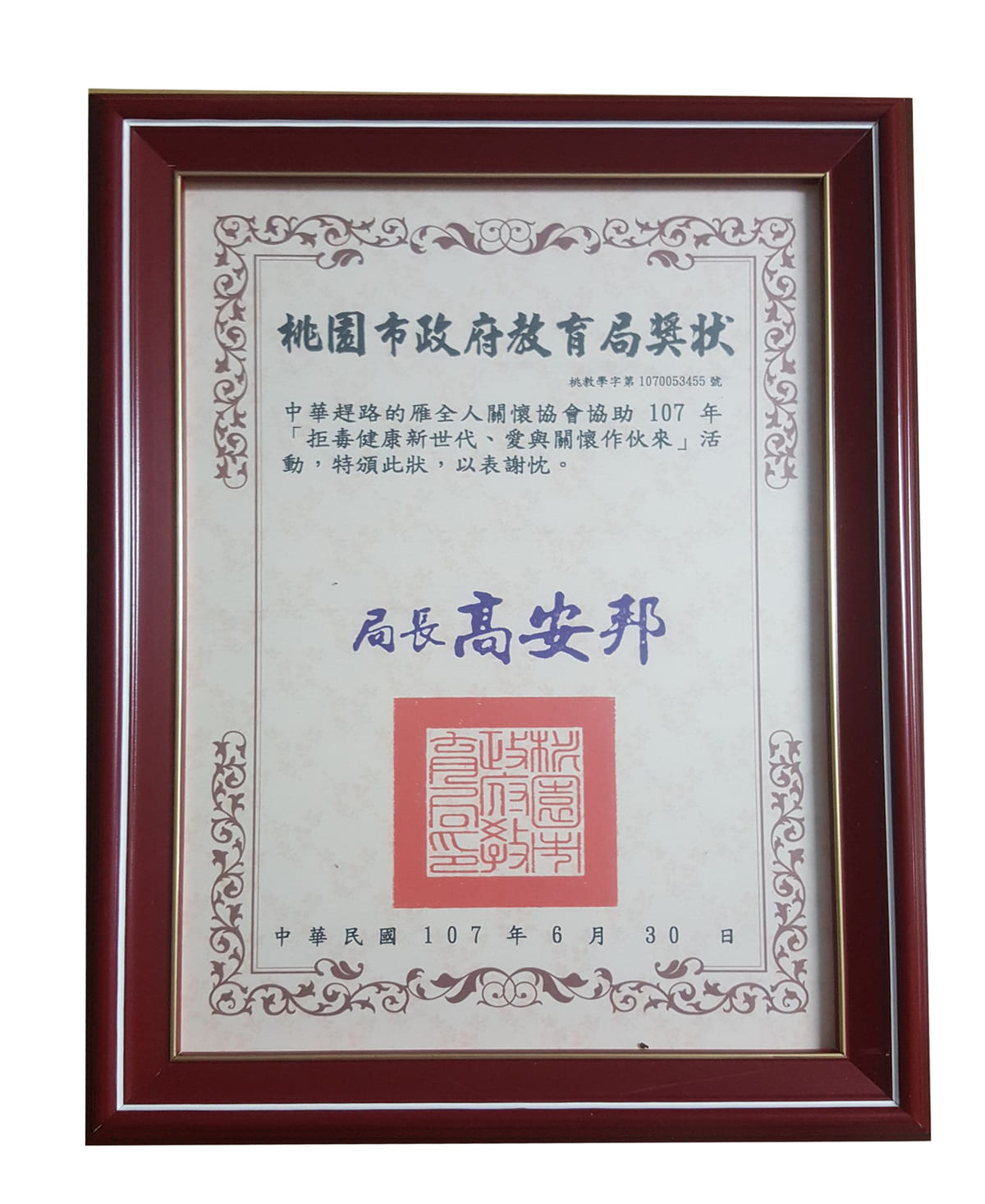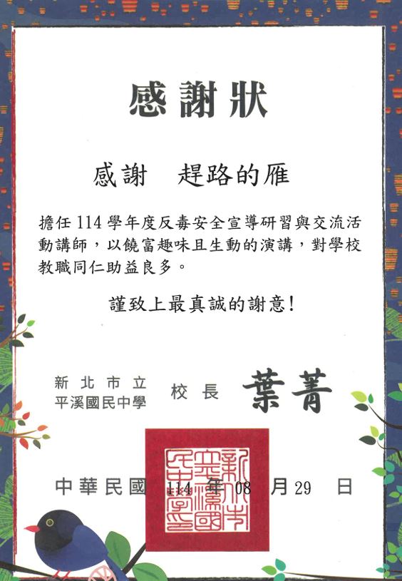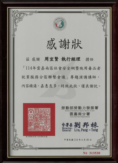 榮獲法務部「反毒大本營」推薦全國績優反毒教育機構團體
