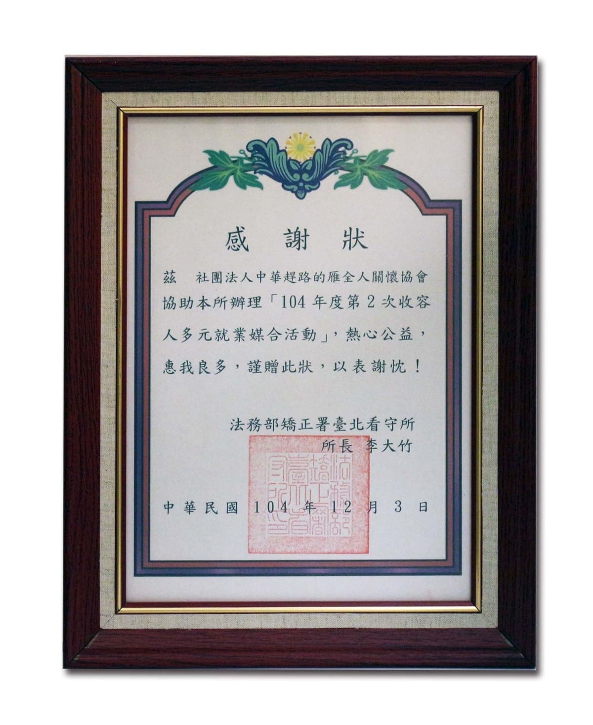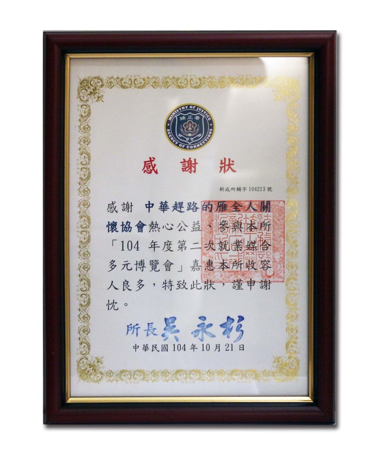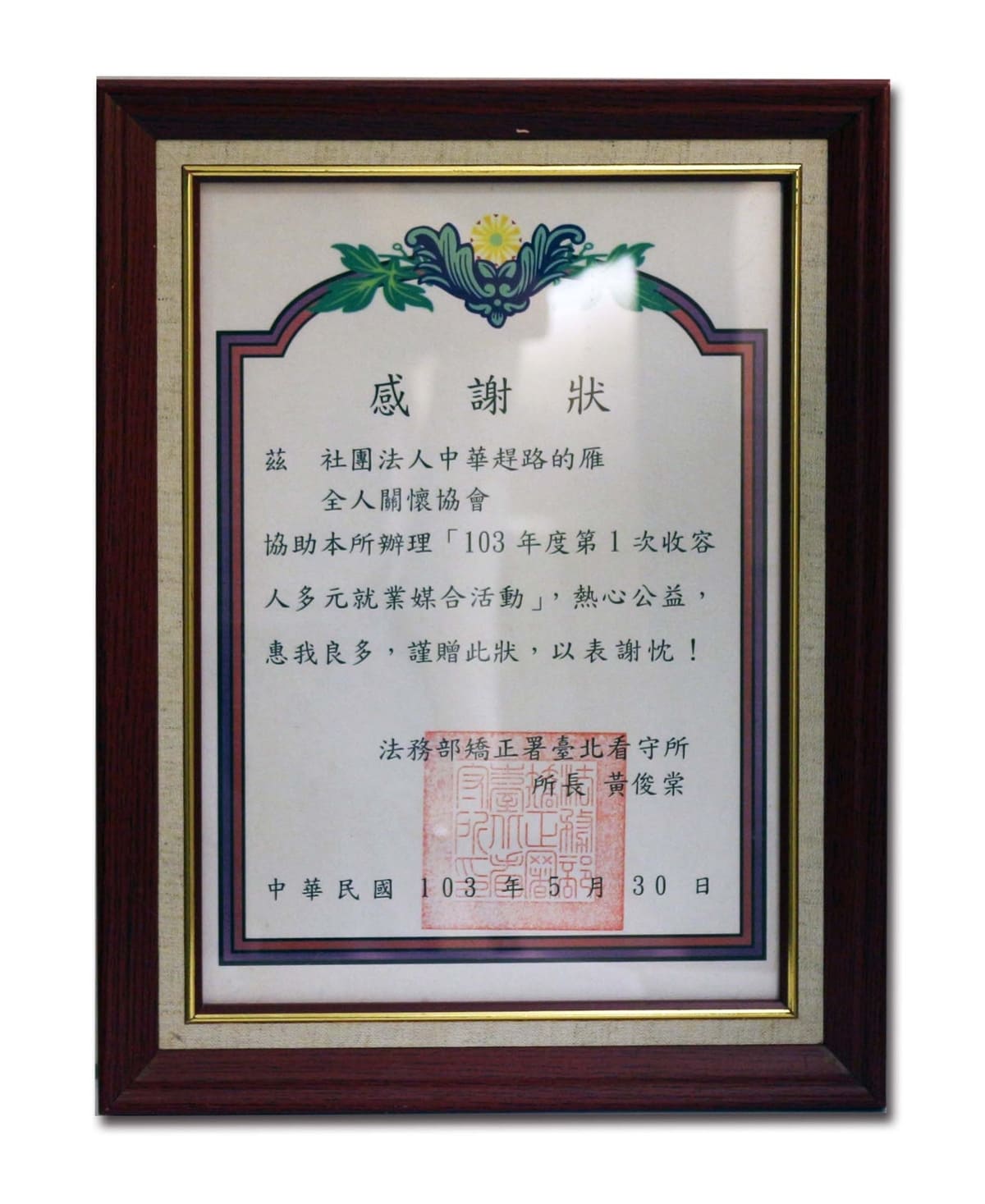 民國103年至114年士林更生保護會-績優合作單位