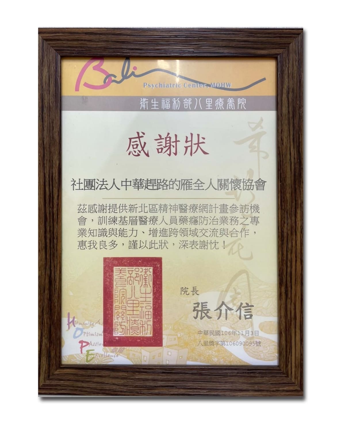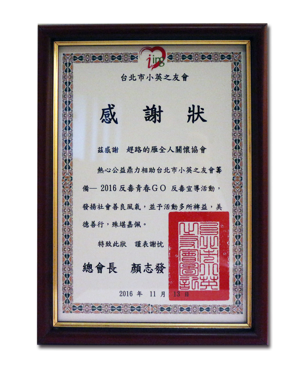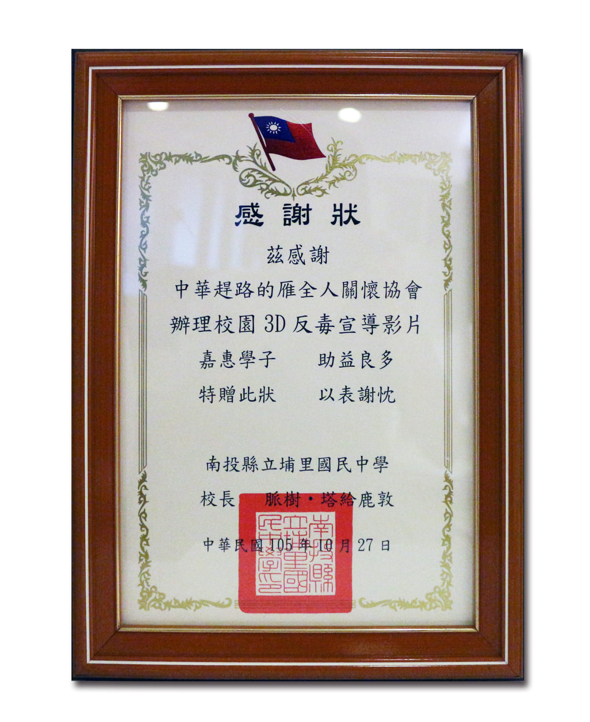 民國105年反毒有功人士-獲總統表揚