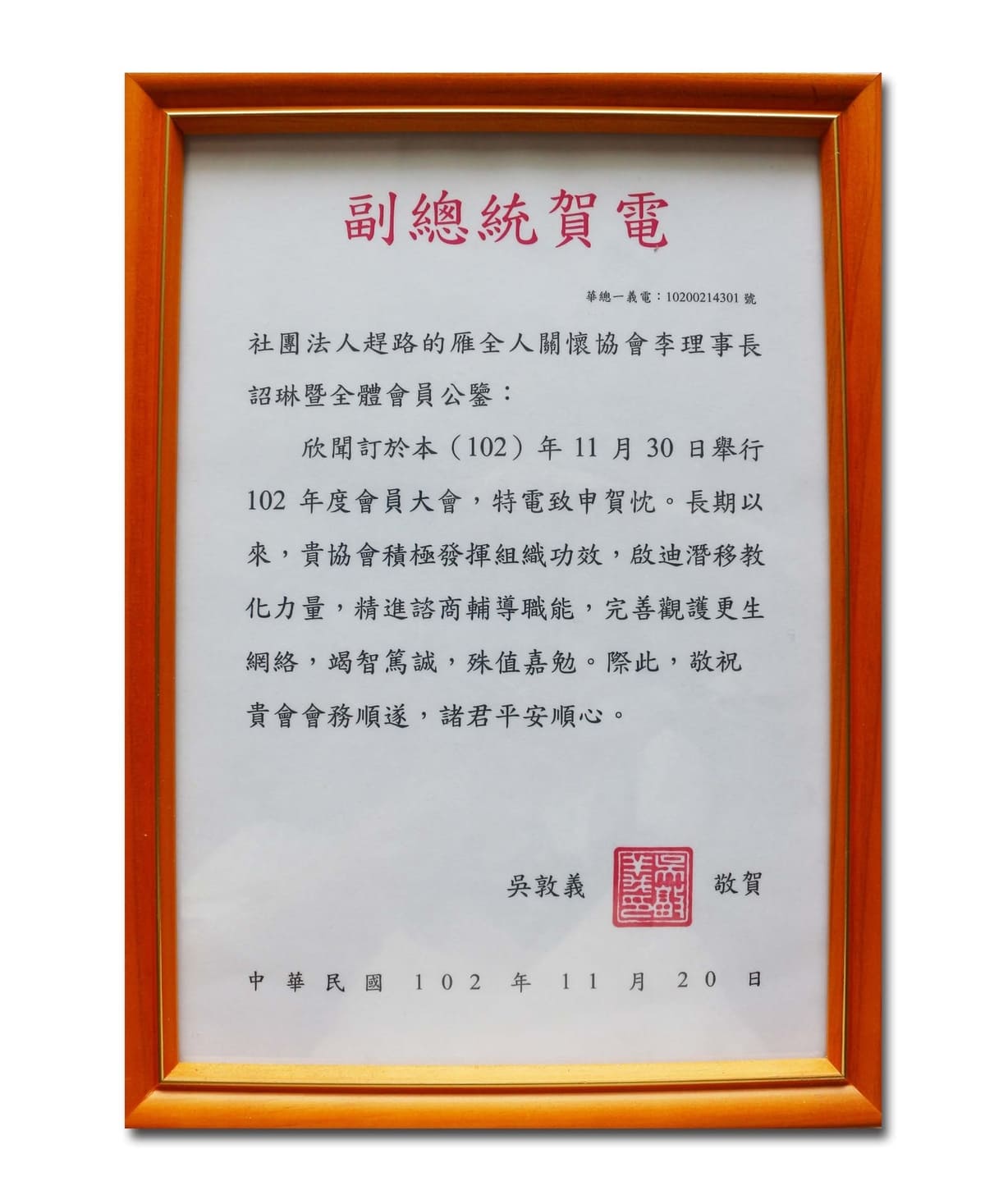 民國102年反毒有功人士-獲副總統表揚
