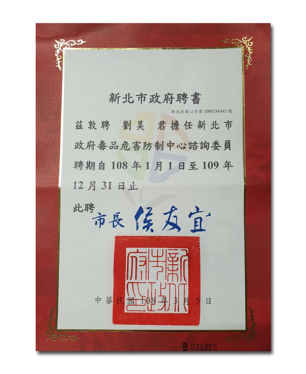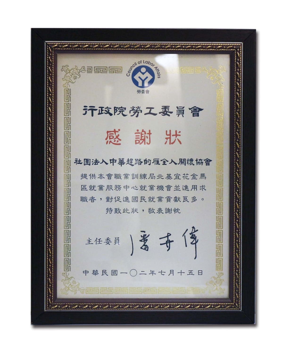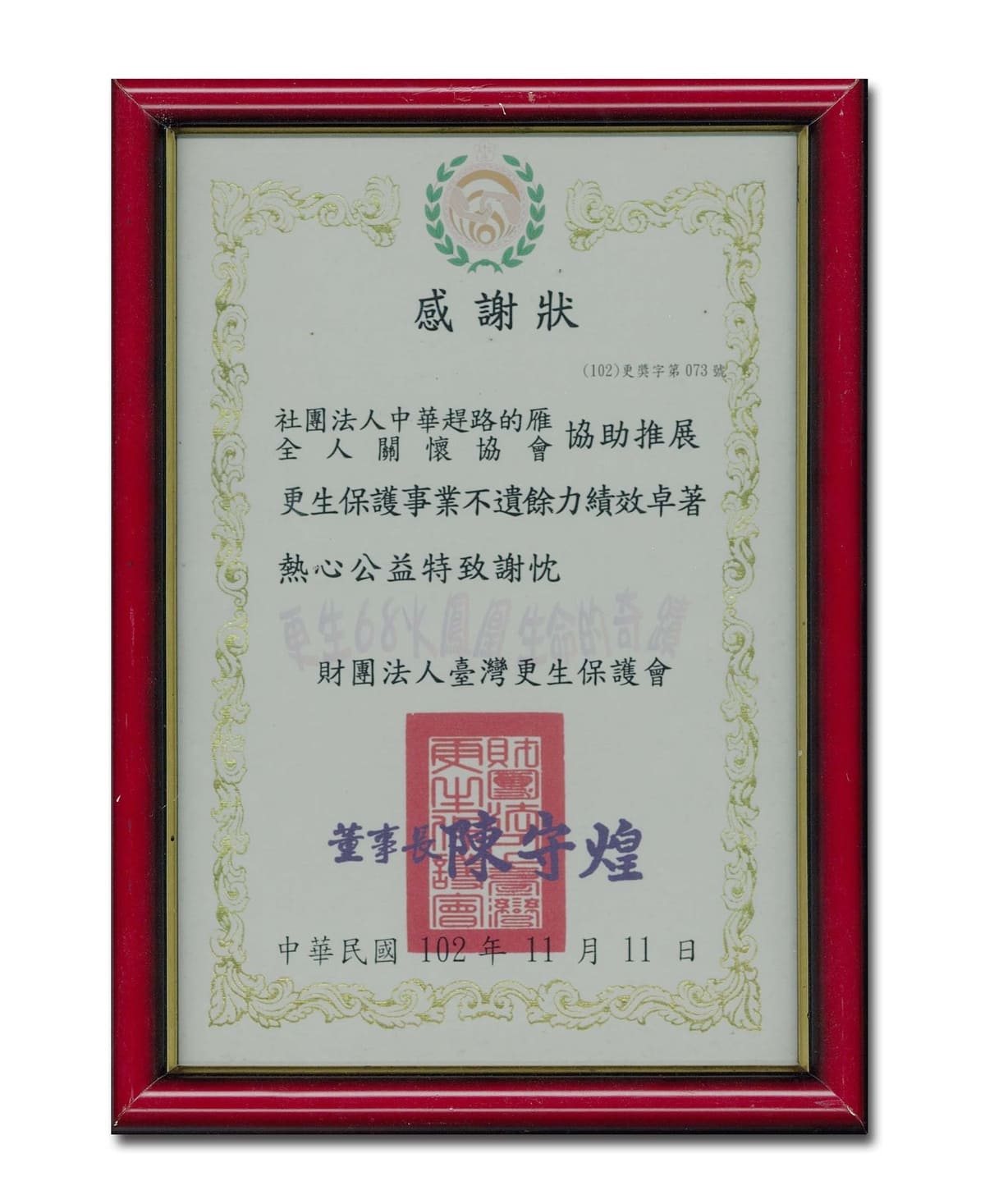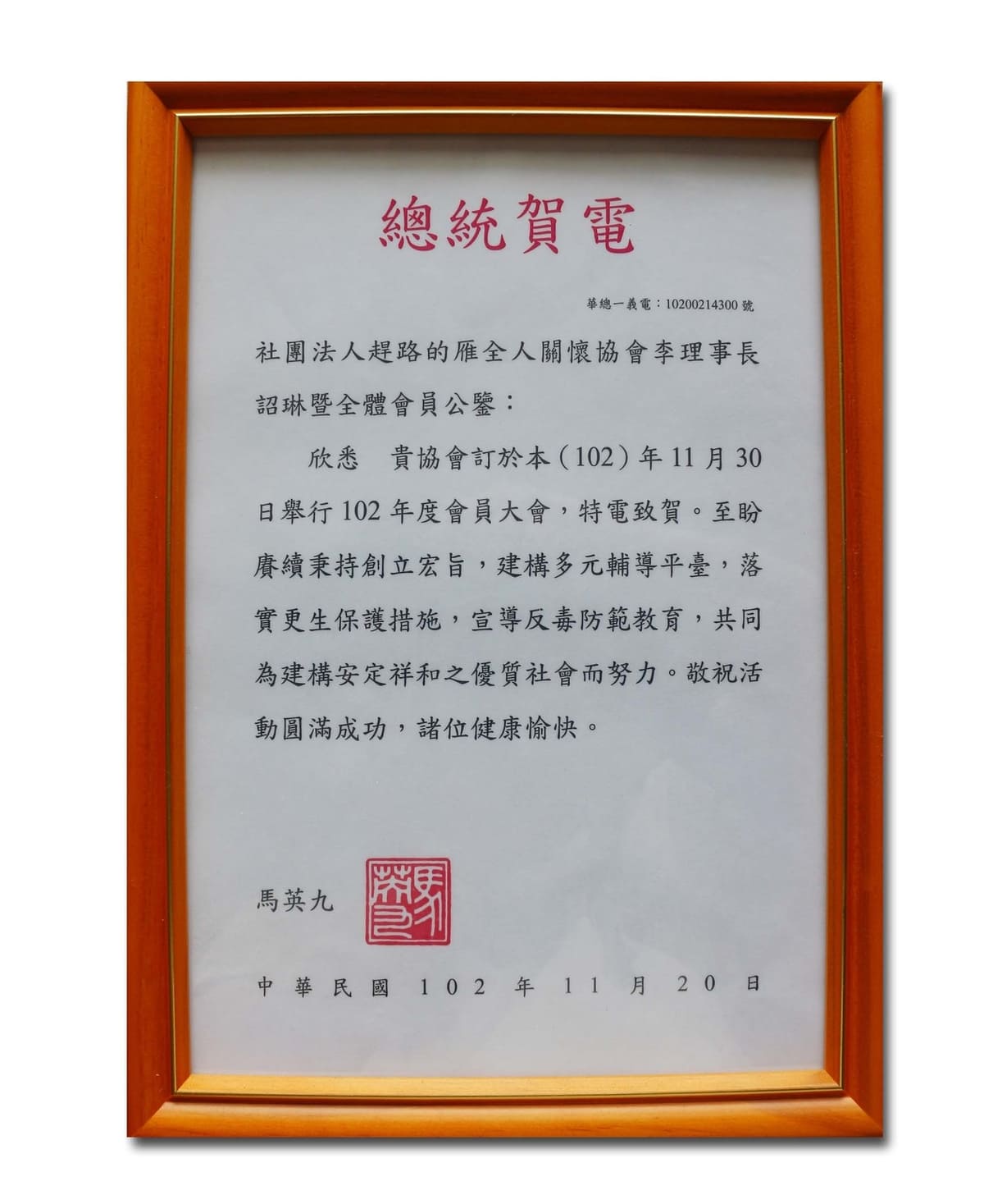 民國102年反毒有功人士-獲副總統表揚