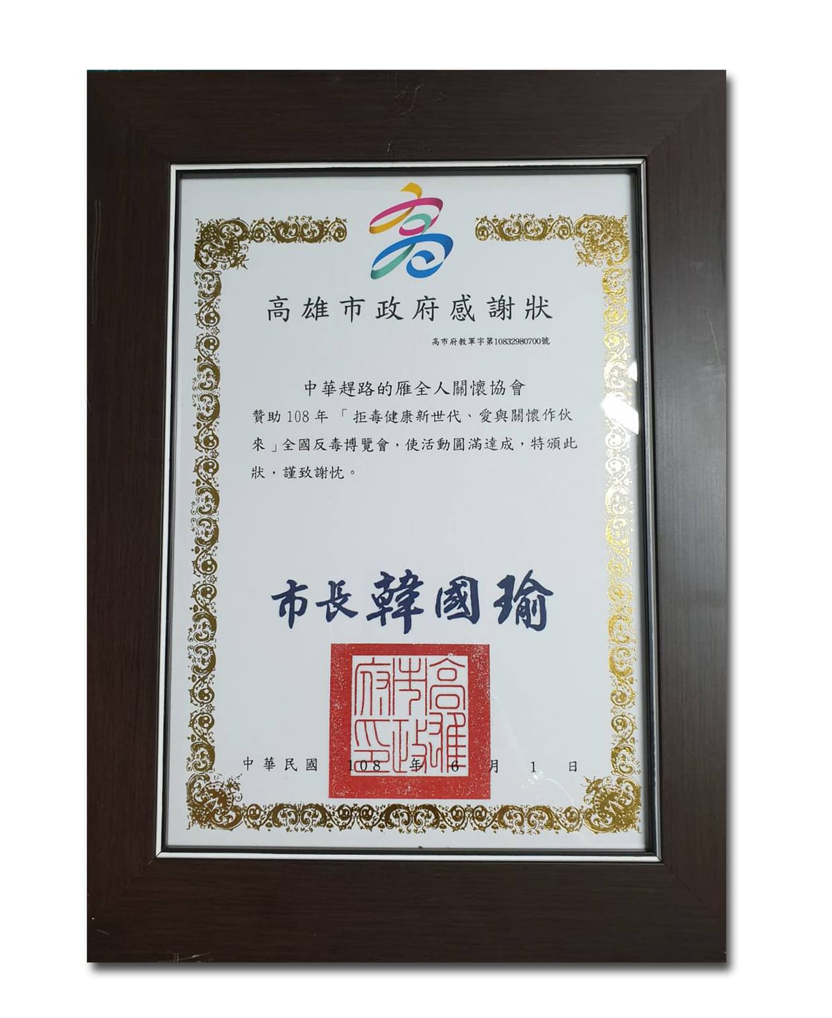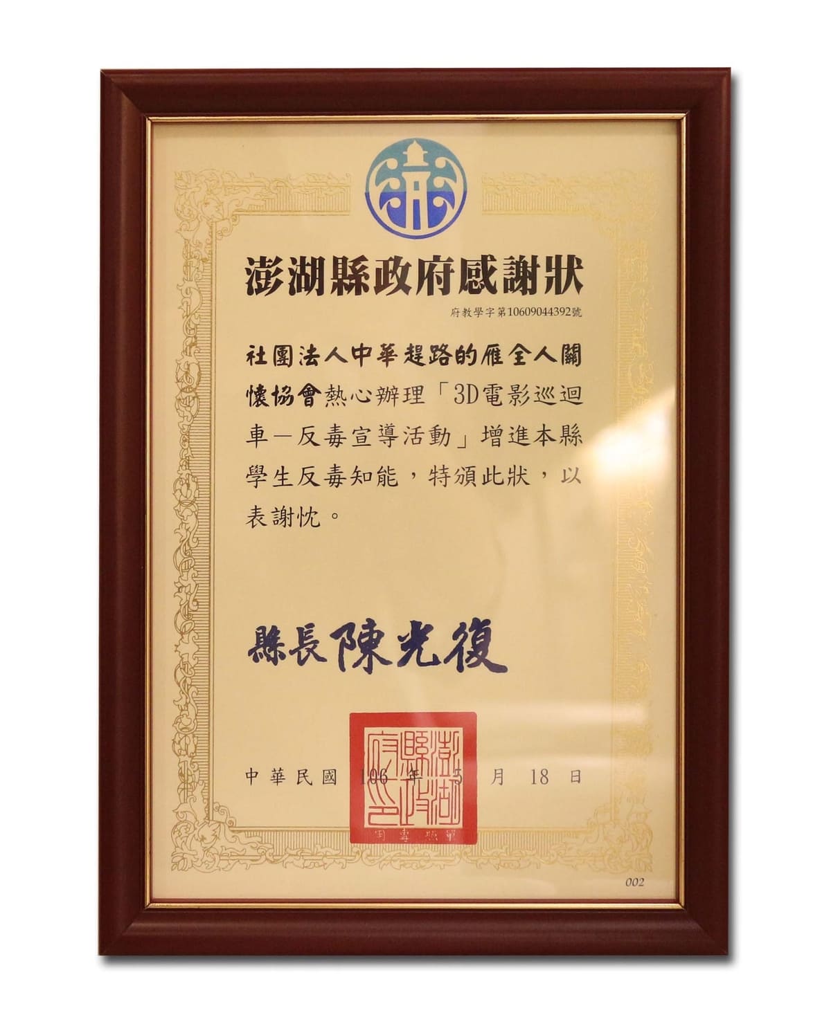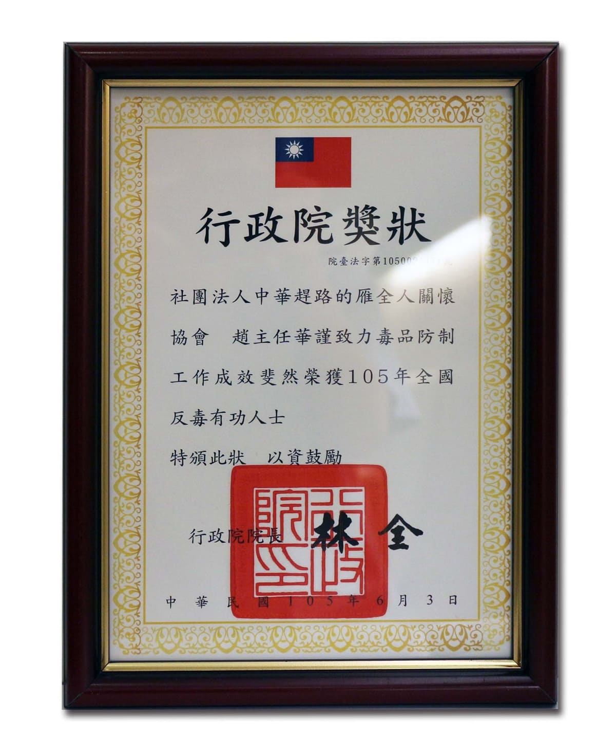民國105年反毒有功人士-獲總統表揚