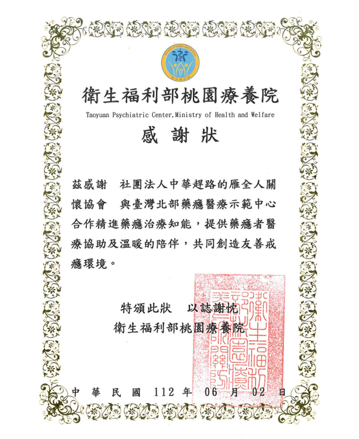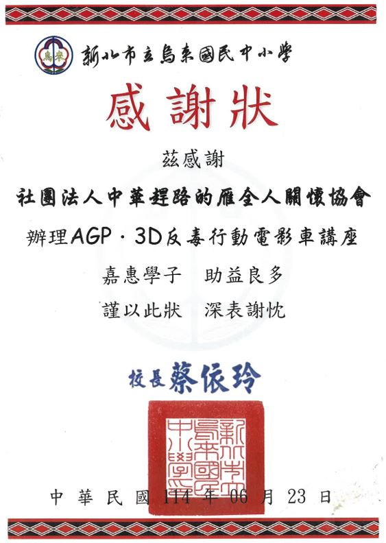 榮獲法務部「反毒大本營」推薦全國績優反毒教育機構團體