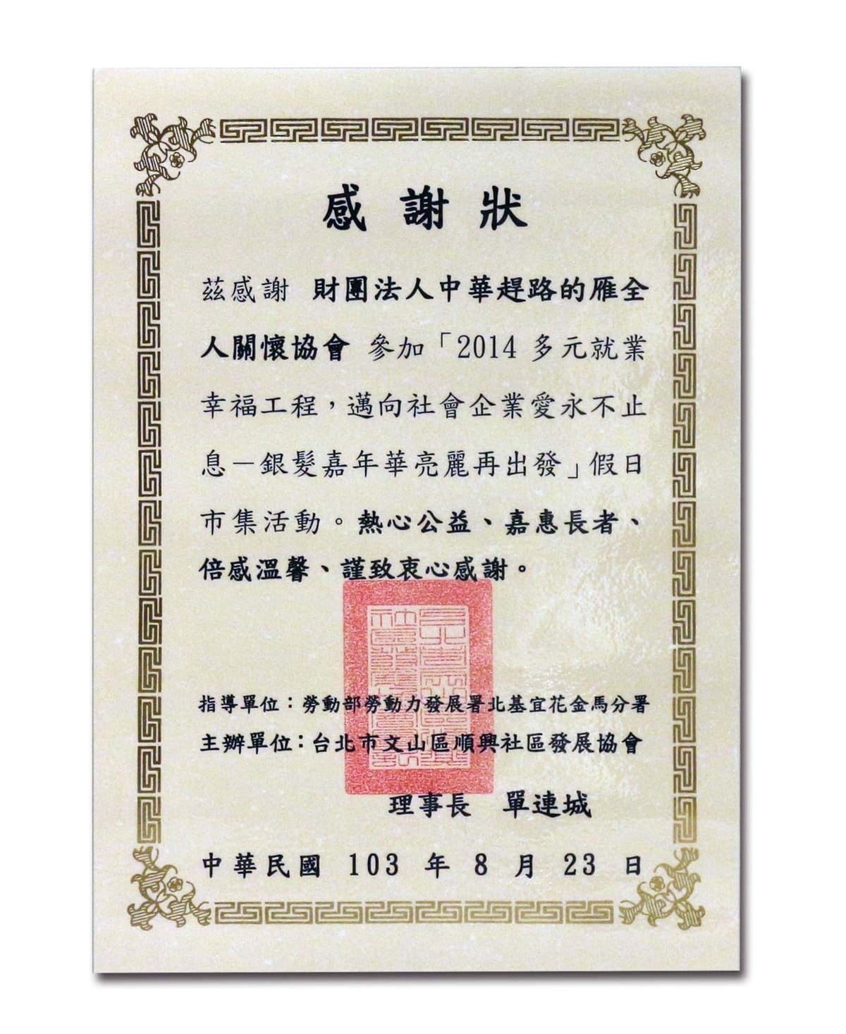 民國103年至114年士林更生保護會-績優合作單位